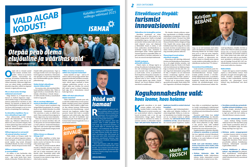 Lehest saab lugeda kandidaatide mõtteid sellest, kuidas hoida Otepää elujõulisena ja väärikana. Kirjutame ettevõtluse ja kogukonna toetamisest, hariduselust ja noorte võimalustest, vallavõimust ning ajaloo- ja kultuuripärandist. Esikaanel leiab vallavanema intervjuu ja artiklite kogumiku lõpetab ankrumehe sõnum uue ärkamisaja küpsemisest. Head soovid on kaasa pannud ka Isamaa erakonna esimees Urmas Reinsalu.